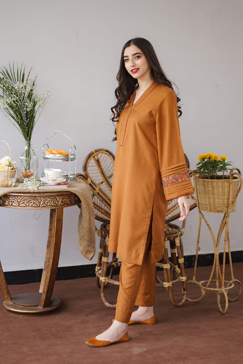 Full Length Thread Embroidered Sleeves with patches